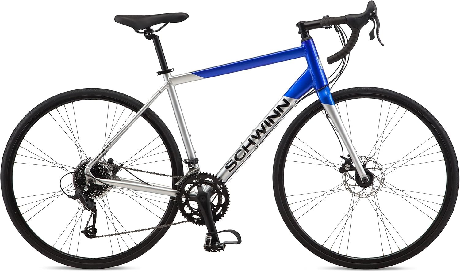 Equipped with front and rear alloy disc brakes, this Schwinn road bike offers consistent stopping power in all weather conditions. Whether riding in rain, mist, or dry conditions, you can confidently slow down or stop with precision, enhancing safety on every ride.
